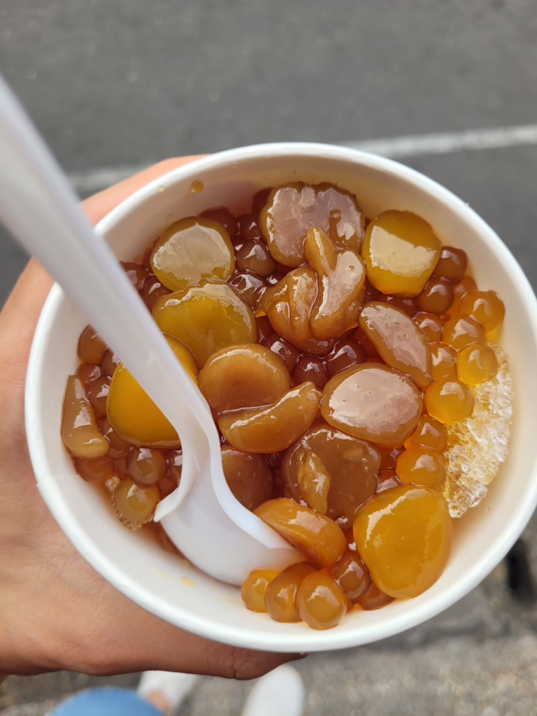 Mir gefällt der Vibe des Viertels so gut, dass ich mich für den Rest des Nachmittags dort treiben lasse. Ich nasche ein köstliches Erdbeer Daifuku von einer Straßenverkäuferin und stehe Schlange für ein shaved ice bei RULI Tapioca balls. Zelebriere People und Haustier-Watching und lausche einer begnadeten Straßenmusikerin.