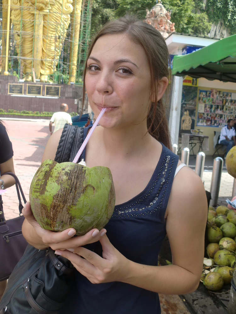 Der Verkäufer schlägt sie mit ein paar schnellen Hieben auf und reicht sie mir mit einem breiten Grinsen. Ich nehme einen tiefen Schluck aus dem Strohhalm und denke: