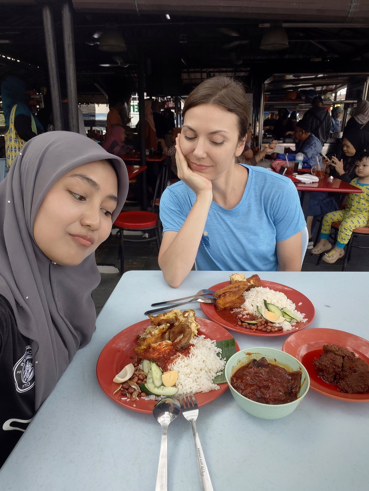 Nadila befragt eine Frau auf dem Wanderparkplatz nach dem besten Nasi Lemak Spot der Umgebung. Ich liebe es, wie die Community hier funktioniert. Hier fragt man noch seine Mitmenschen um Rat, statt zu googeln.