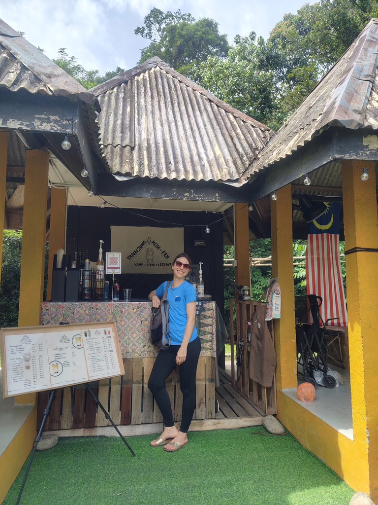 Zurück im Hier und Jetzt bringt Nadila mich an einen Ort, an dem malaysische Familien gerne ihre Freizeit verbringen. Ein echter Geheimtipp und der Weg dorthin ist gar nicht so leicht zu finden. Wir stoppen und fragen in einem Waschsalon mit dem lustigen Namen Mr Dobi Laundry um Rat. Und siehe da, Mr Dobi’s Wegbeschreibung bringt uns ans Ziel: Die Campsite Janda Baik, die sich rund um einen Fluss mit entzückenden Badegumpen aufgebaut hat.