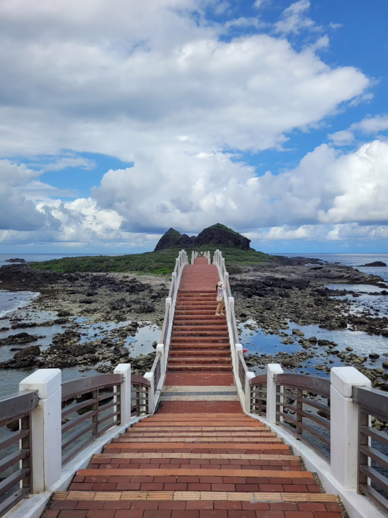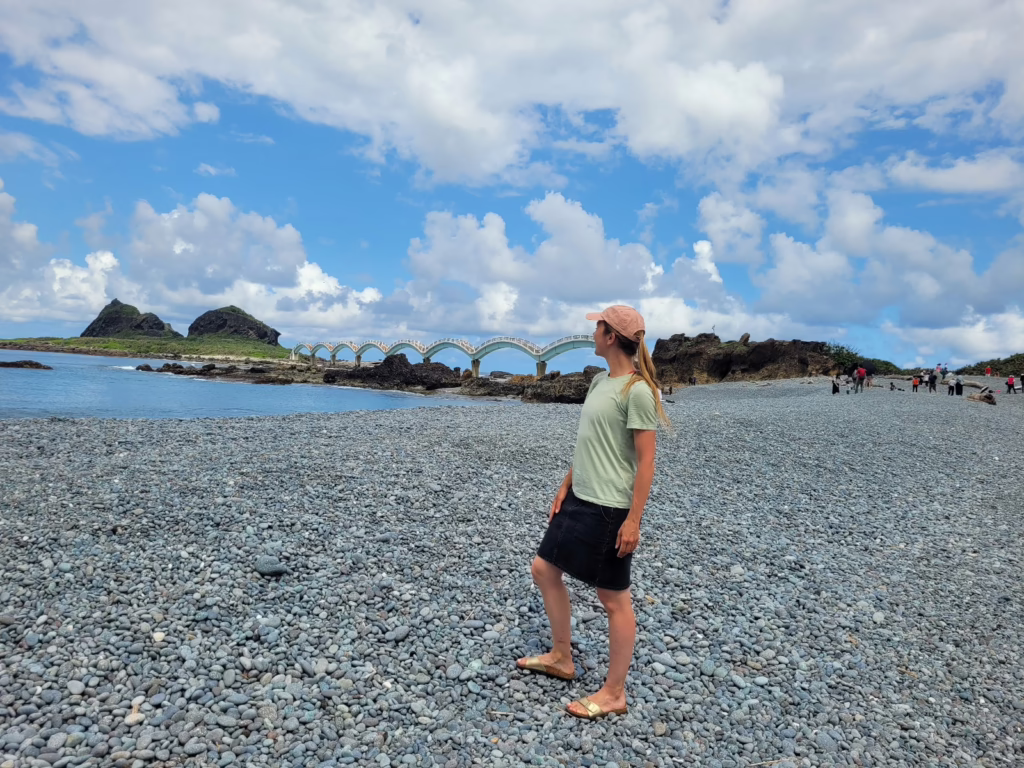 Abgesehen davon, dass die Brücke ein herausragend schönes Fotomotiv ist, macht es mir Spaß, die acht Bögen zu überqueren und die beeindruckende See auf mich wirken zu lassen, die mich von allen Seiten umgibt. Die ganze Insel kann in zwei Stunden umwandert werden und ist Teil des Sanxiantai Naturschutzgebiets. Der Pazifik glitzert in der Sonne. Hier würde ich gerne Stunden verbringen, einfach sitzen, schauen, atmen. Doch wie das bei Gruppentouren nun mal so ist: Wir sind durchgetaktet und müssen zuürck nach Taitung. Das Wetter sitzt uns im Nacken: Regen ist vorhergesagt.