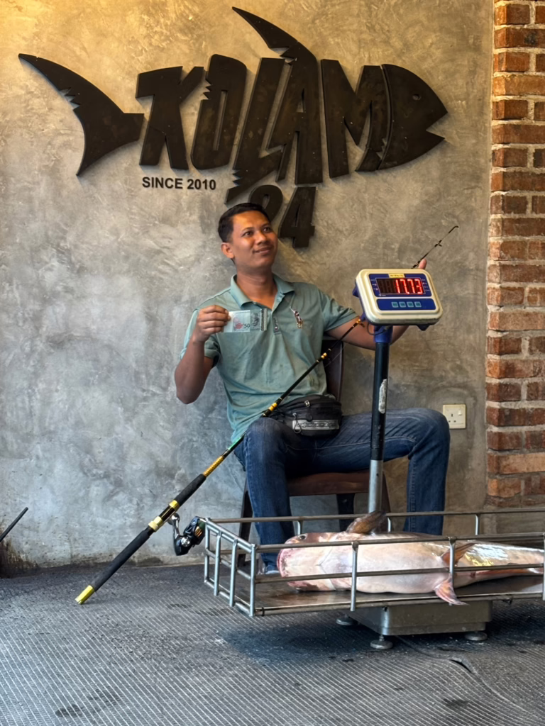 Hobby-Angler ziehen gigantische Fische aus dem Teich, lassen sie nach dem Wiegen wieder frei und hoffen auf ein Preisgeld. Wir genieen das sich wiederholende Spektakel, während ein deutlich kleineres Exemplar auf unserem Tisch landet – zusammen mit dem weltbesten Satay, Klebereis, gedünstetem Gemüse, gekochtem Hühnchen und sündig leckeren Fisch-Chips.