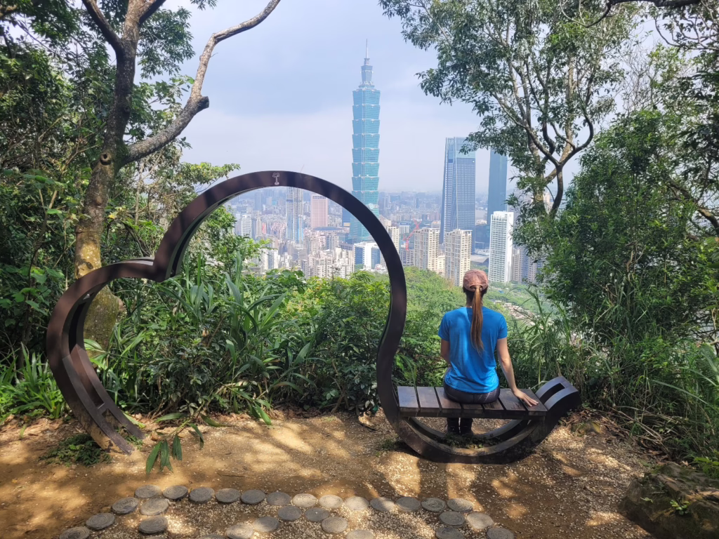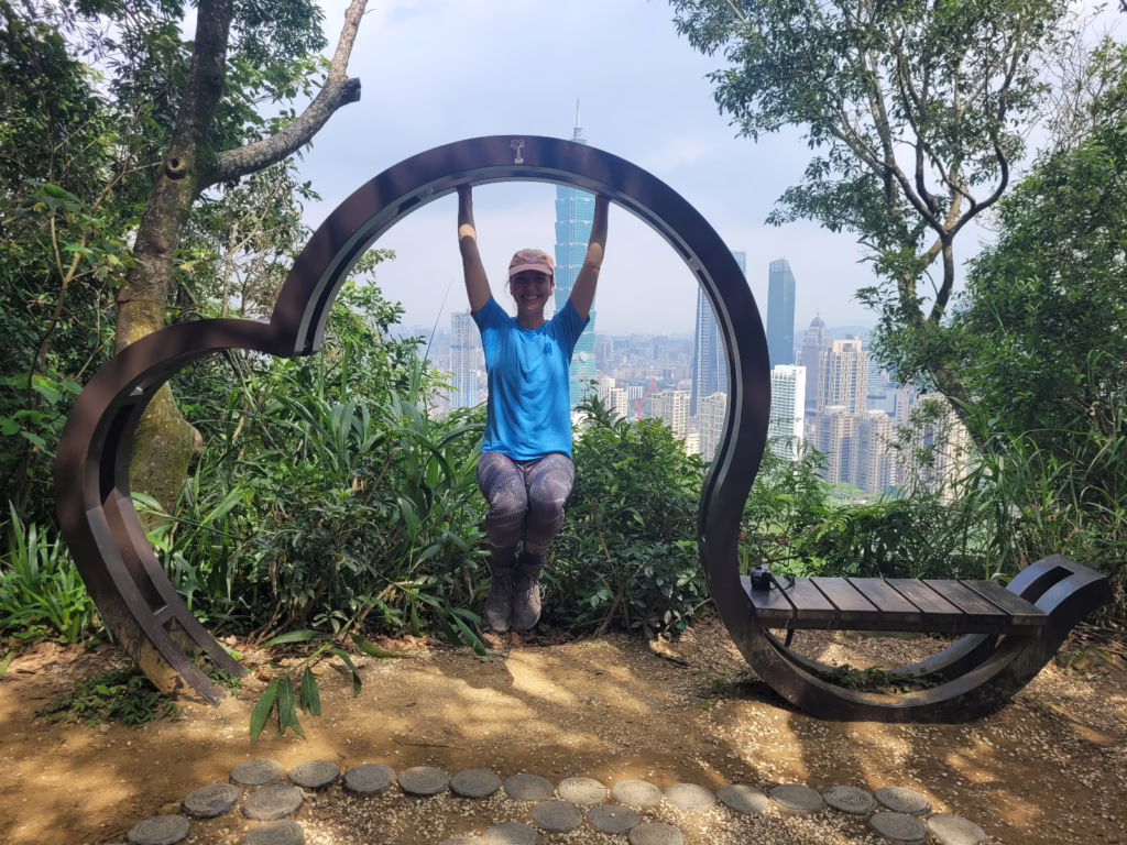 Der Taipei 101 ragt kerzengerade aus dem Häusermeer, das sich bis zum Horizont erstreckt. Am Ende ist dieser Ausblick aber nur die Kirsche auf der Torte. Die Momente, die mir wirklich in Erinnerung bleiben, geschehen entlang des Weges: Meinen Weg auf den Gipfel begleiten eine italienische Violinistin, taiwanesische Fitness-Rentner und beeindruckende Schmetterlinge, die mit mir durchs Grüne tanzen.