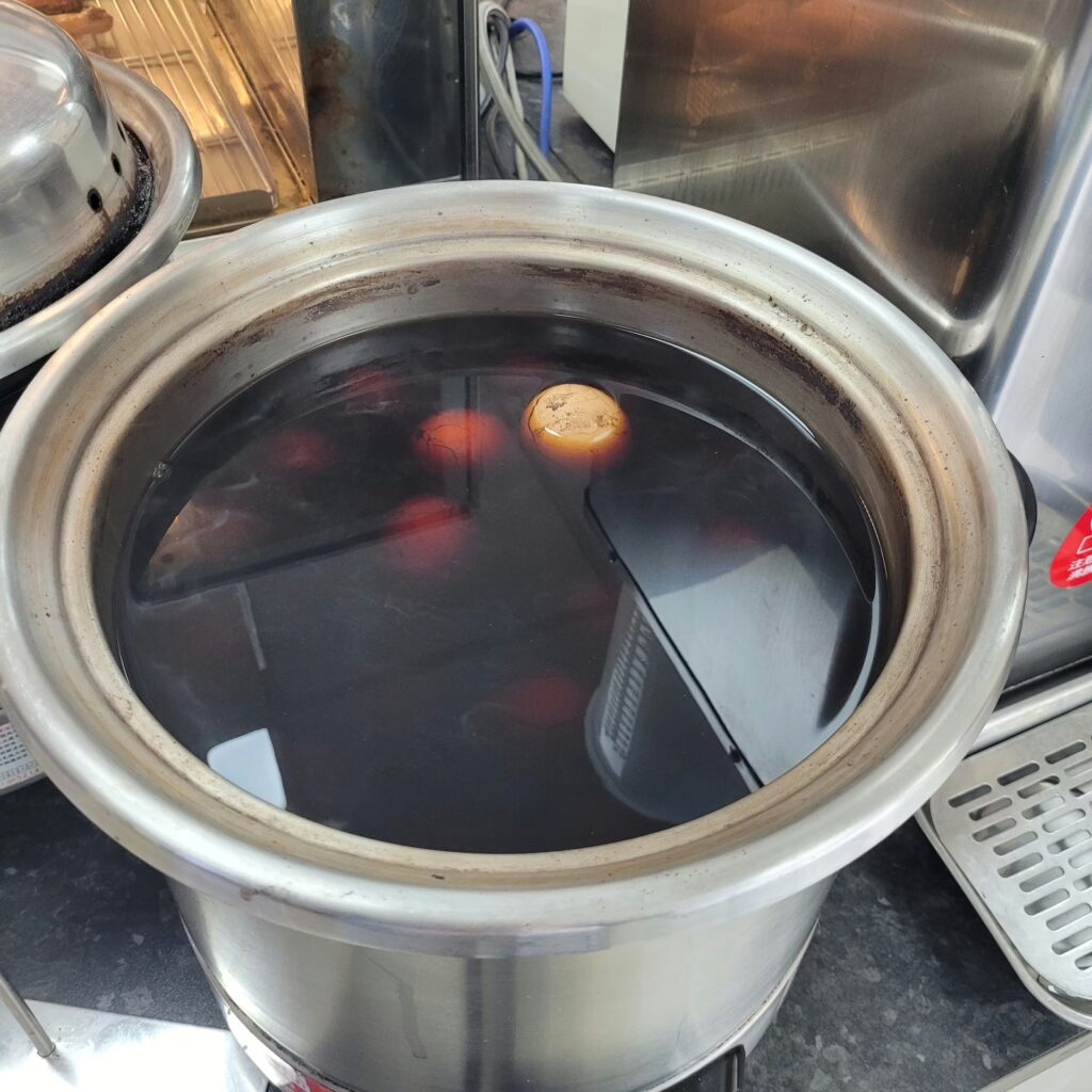 Auf dem Weg habt ihr noch die Gelegenheit euch beim Convenience Store eurer Wahl mit Snacks für die Wanderung einzudecken. Mir fallen zum ersten Mal in dunkler Brühe schwimmende Eier in einem großen beheizten Bottich auf. Kein sehr appetitlicher Anblick! Ich wähle einen mit Sesampaste gefüllten bao bun. Zu diesem Zeitpunkt habe ich noch keine Ahnung davon, dass Taiwan’s berühmte Teeeier bald schon zu meinem täglichen Snack-Repertoire gehören werden!