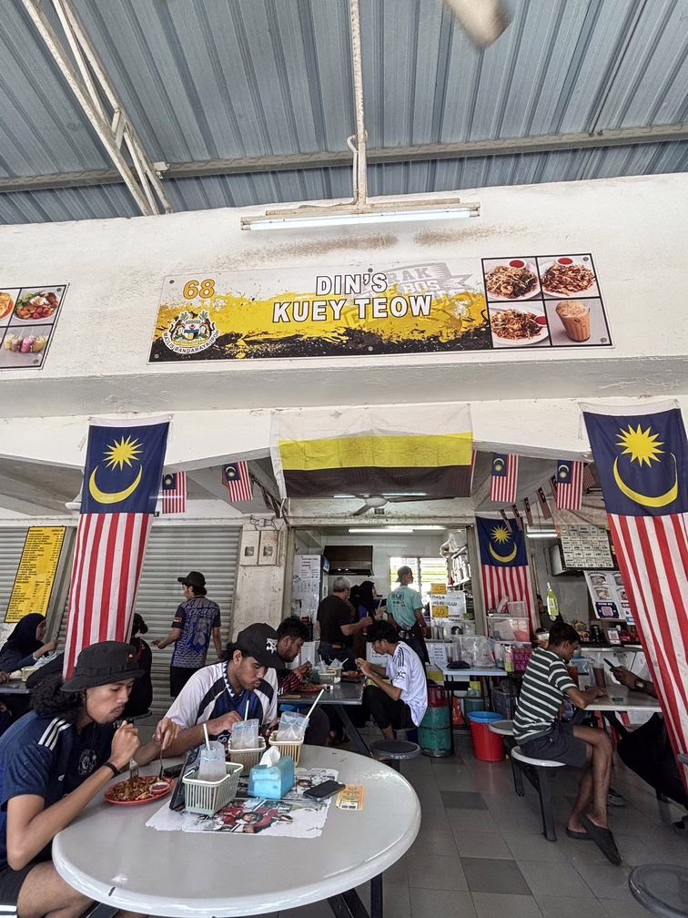 Für das ikonische char kwey teow warten wir gut 40 Minuten, denn bei Din’s Kwey Teow werden alle Nudelgerichte frisch auf Bestellung zubereitet. Die breiten Reisbandnudeln werden in einem Wok mit Knoblauch, Sojasauce, Eiern, Sprossen, Schnittlauch und Garnelen scharf angebraten und haben ein herrlich rauchiges Aroma. Gleich zwei große Gläser iced lemon tea ohne Zucker schaffen einen wohltuenden Ausgleich zur inneren und äußeren Hitze.