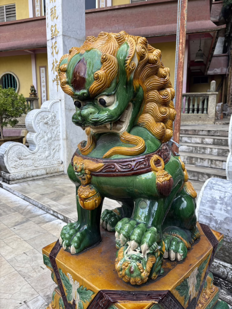 Nachdem wir ein begeistertes Fotoshooting vor dem Tempeltor gemacht, uns über die frechen Affen amüsiert und den wundervollen chinesischen Garten samt Pagode, Bonsais und Koi-Teich betrachtet haben, teilen mir meine Freunde mit, dass ich mir gern Zeit nehmen darf, um das Innere des Tempels alleine zu erkunden. Als gläubige Muslime möchten sie darauf verzichten, eine buddhistischen Religionsstätte zu besuchen, in der offensichtlich aktiv gebetet wird.