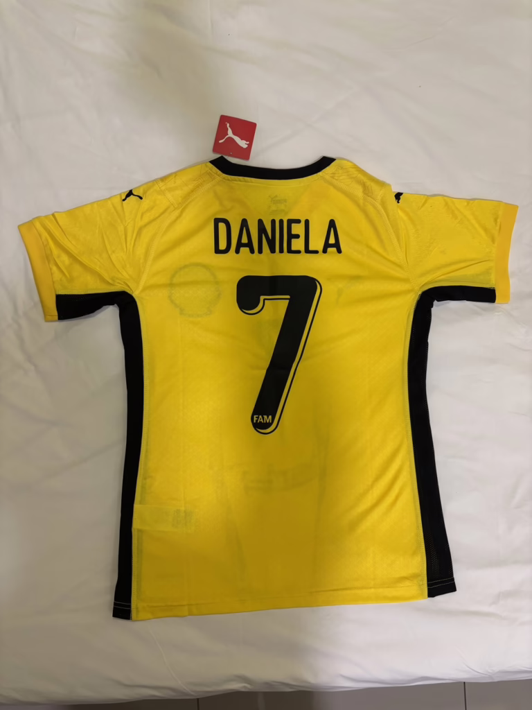 Sufi überreicht mir stolz das neue gelbe Fußball-Trikot der malaysischen Nationalmannschaft. Als ich das Land in 2011 verlassen habe, wurde mir von Nadila’s Abteilung die Vorgänger-Version in Blau geschenkt. Der Kreis schließt sich. Besondere Ironie: Hergestellt werden die Trikos vom deutschen Hersteller Puma, der in der Nähe meiner Heimatstadt Nürnberg sitzt.