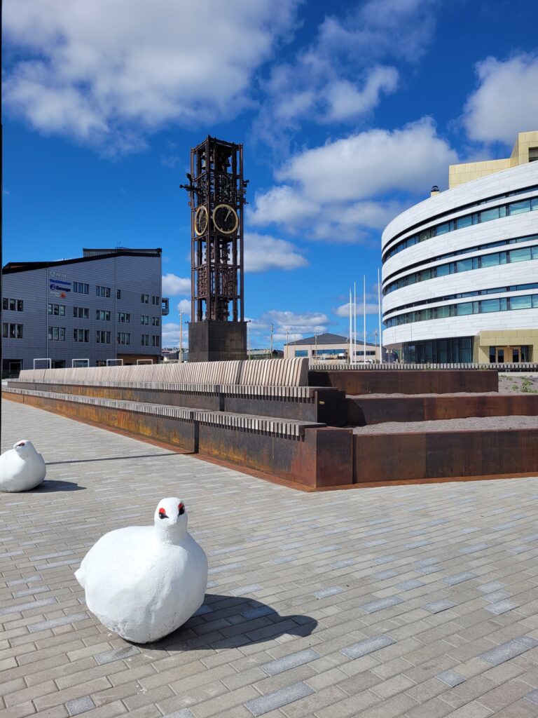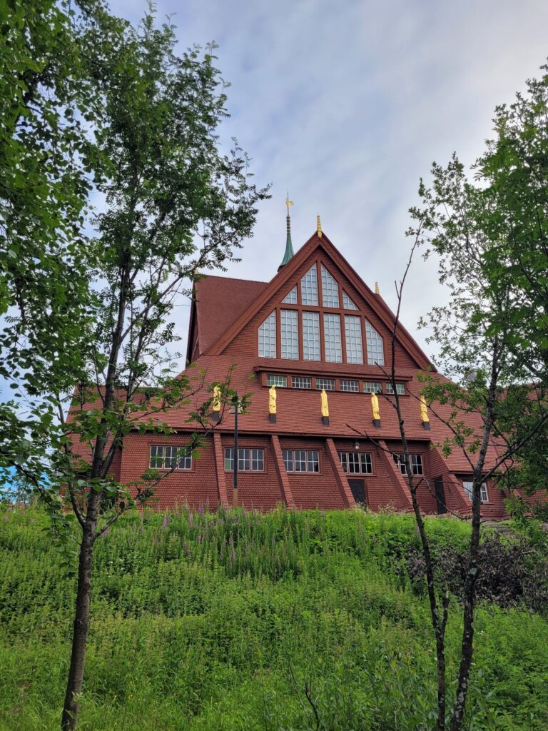 Leider ist es zur Zeit meines Aufenthalts durch die Umsiedlung unmöglich Kirunas wunderbare Holzkirche zu besichtigen. Die Kirche ist einer Sami-Hütte nachempfunden und wurde zwischen 1909 und 1912 erbaut – mit freundlicher finanzieller Unterstützung von, na wer kann es erraten? Genau, LKAB. Die Kirche wird nächstes Jahr im ganzen Stück ins neue Stadtzentrum transportiert und soll dort in 2026 bereits wieder eröffnen. Ein heikles Unterfangen!