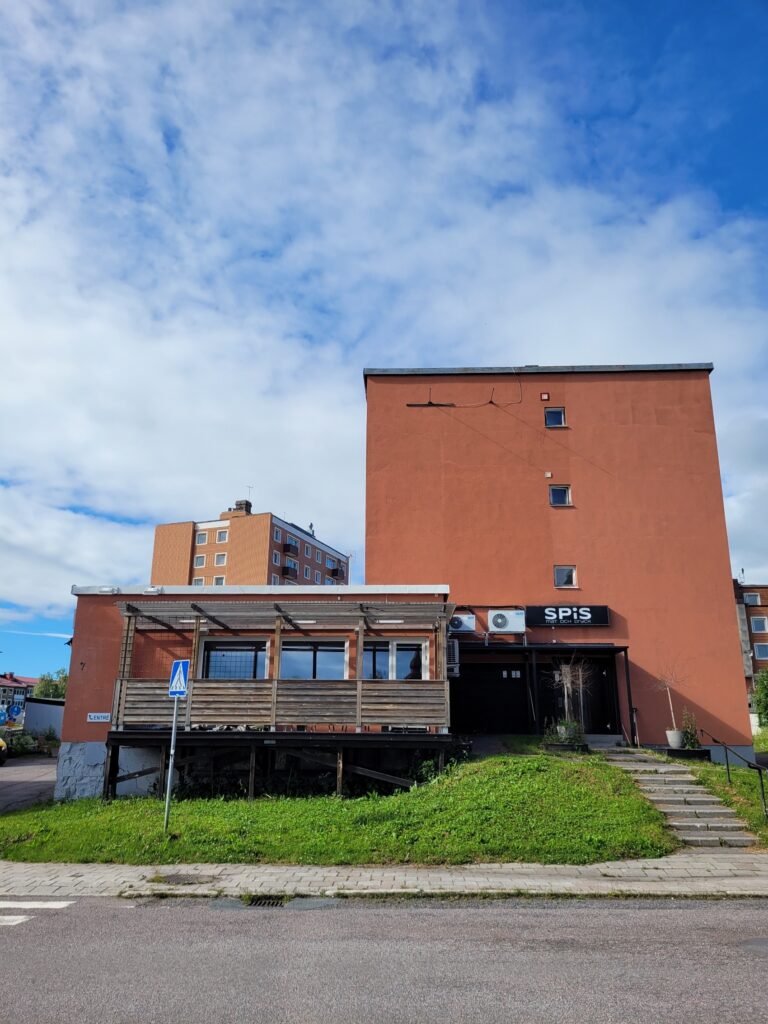 Das Restaurant Spill Saluhall & Eatery wirkt hip. Gegenüber befindet sich das Scandic-Hotel, das sich smart direkt im neu entstehenden Stadtkern platziert hat. Es gibt eine schöne Auswahl an lokalen Gerichten. Viele davon sind sehr fleischlastig – es werden zu meinem Leidwesen Rentiere und Elche verarbeitet. Zum Glück gibt es auch Pizzen und Bowls im Angebot.