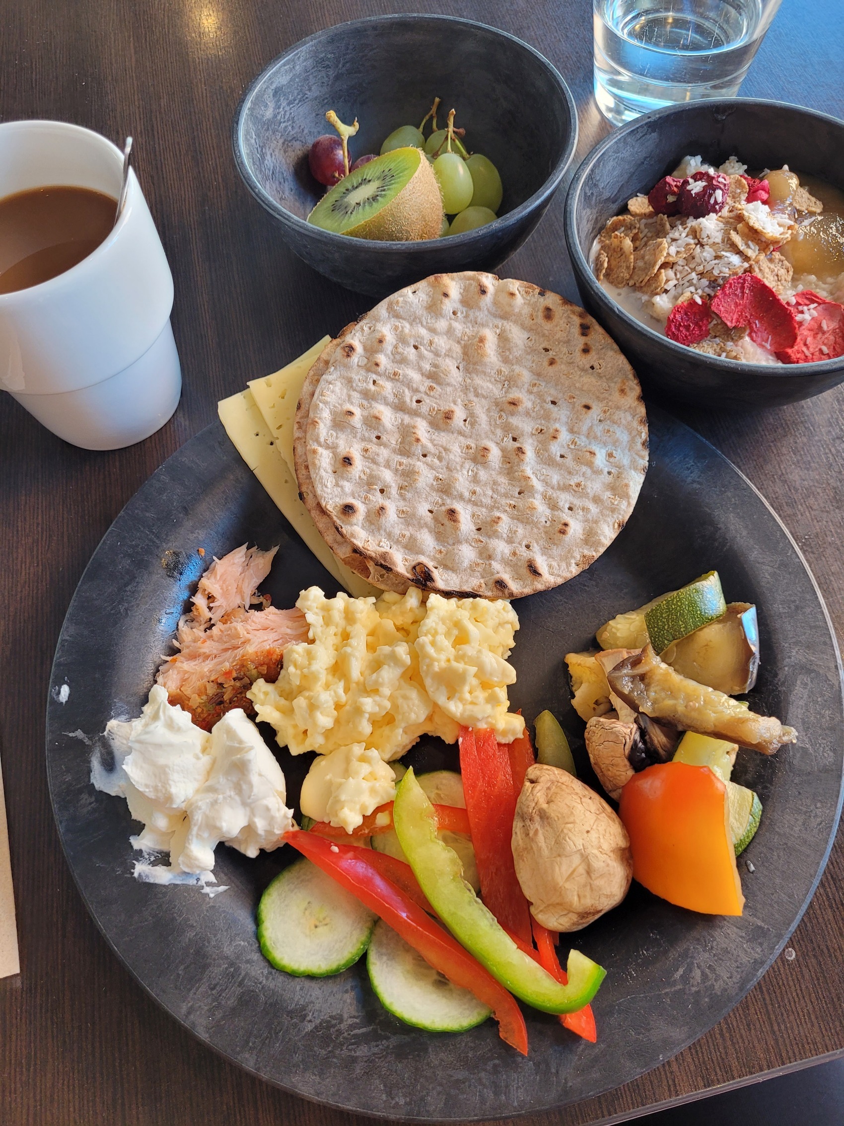 Ziel des heutigen Tages ist es mich zu akklimatisieren. Das köstliche Frühstücksbuffett des Spis Hotels hilft mir, wieder Energie zu tanken. Meine Erwartungen werden nicht enttäuscht, die Auswahl ist fürstlich: roher und geräucherter Lachs, vier Sorten Käse, weiche und hartgekochte Eier, Rührei, rohes, eingelegtes und gekochtes Gemüse, diverse Sorten Müsli, schwedischer Porridge (wird mit Milch oder Yoghurt flüssig gemacht, mit Fruchtkompott gesüßt und mit Nüssen, Samen und Granola getoppt), kleingeschnittenes Obst, mindestens fünf (!) Sorten Knäckebrot, Sauerteigbrot, Brötchen, Filterkaffee und Tee. Einen besseren Start in den Tag gibt es für mich nicht! Mein Körper dankt mir für die gute Energie und den Schlaf.
