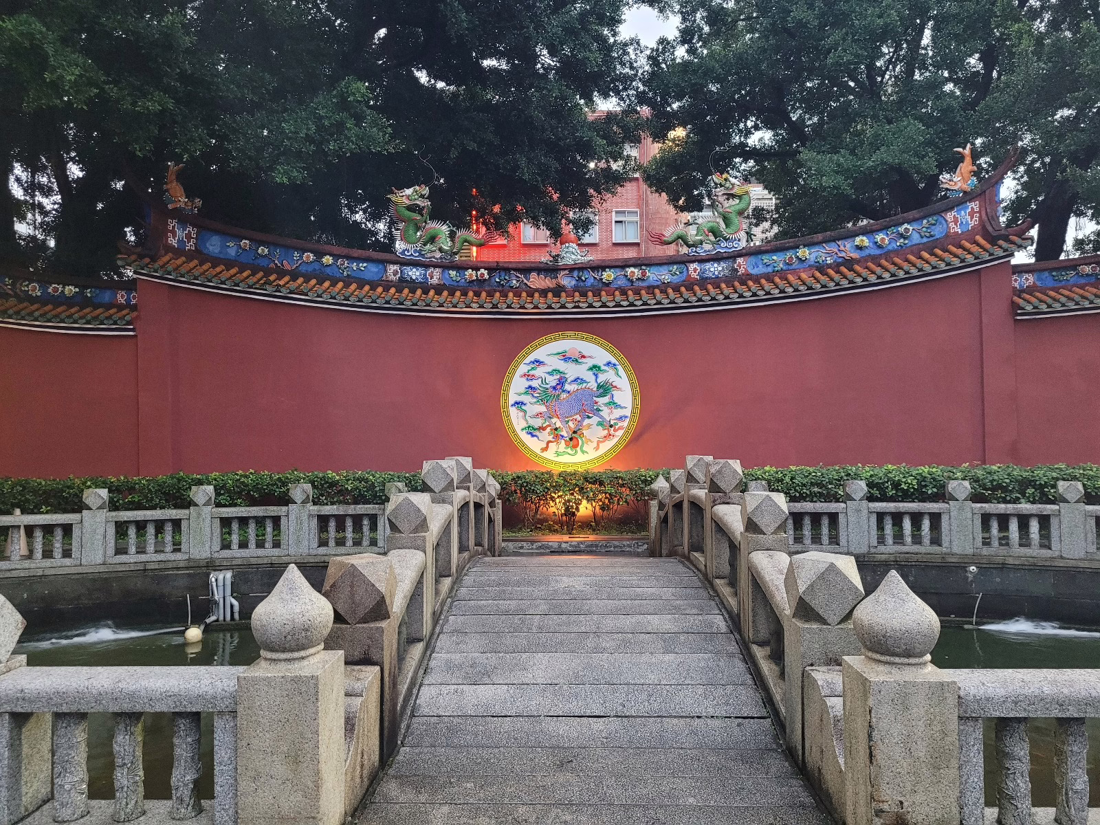 Es gibt auch einen schönen, 200–300 Jahre alten buddhistischen Tempel auf dem Gelände. Besonders Abends herrscht hier eine ruhige, besinnliche Stimmung und ihr könnt die Sonne mit Blick auf den Fluss und die Skyline von Taipei untergehen sehen. Achtung: Mückenschutz auflegen!