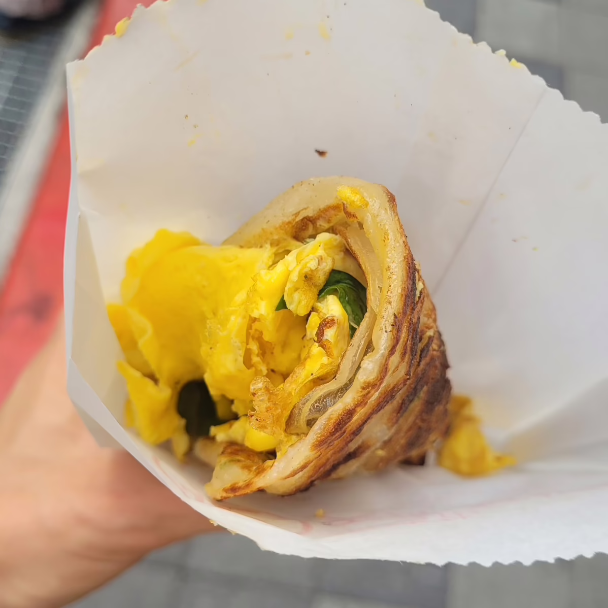 Ich würde euch raten, den Food Court im unteren Teil des Gebäudes zu skippen, da das Essen dort teuer und die kleine Sitzfläche zu klein für die vielen Menschen ist. Ich habe Glück, dass mir ein freundlicher älterer Mann ein fixes Signal gibt, als neben ihm ein Platz frei wird, nachdem er mich mehrfach hoffnungslos mit meinem Tablett in der Hand hat kreisen sehen.