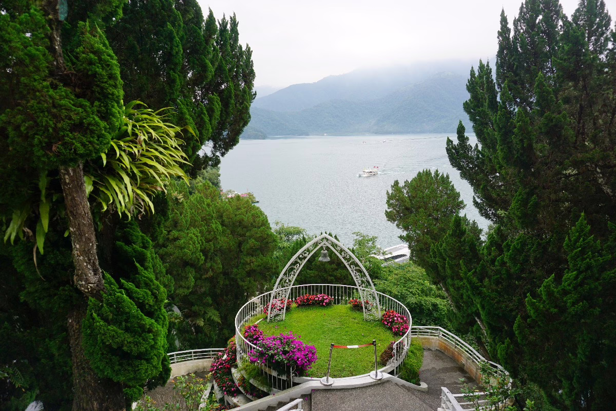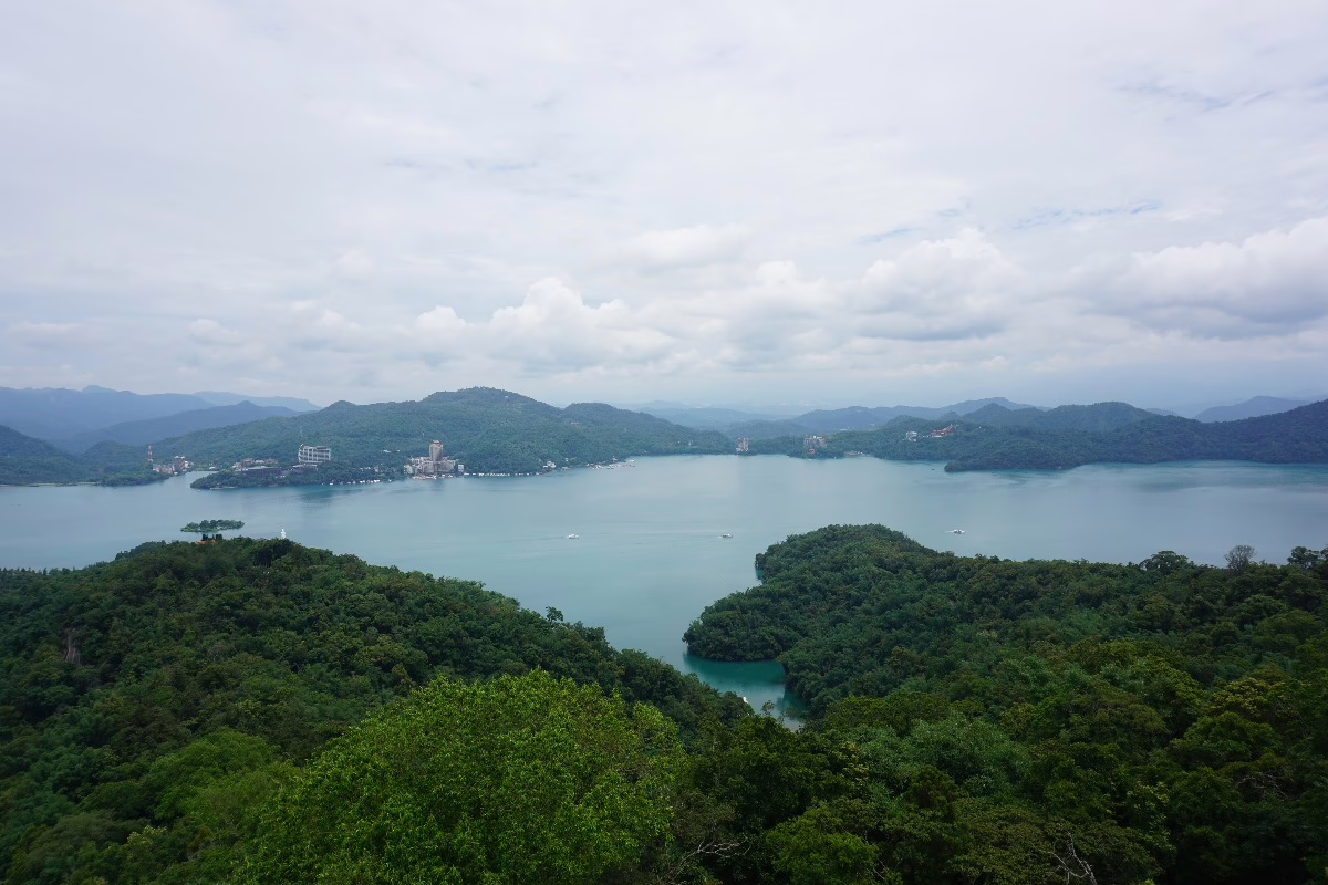 Der größte und bekannteste See Taiwans liegt im Bezirk Nantou auf etwa 748m Höhe und ist von bewaldeten Bergen umgeben. Den poetischen Namen verdankt er seiner Form: Der östliche Teil erinnert an eine Sonne, der westliche an die Silhouette eines Halbmondes.