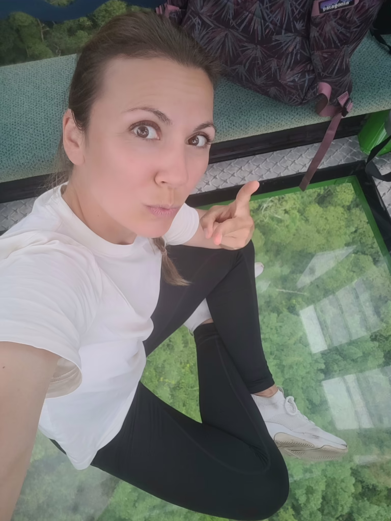 Die Fahrt ist überraschend schön. Steil, ruhig, mit freiem Blick über den See. Da nichts los ist, bekomme ich eine Gondel ganz für mich alleine – auf dem Rückweg sogar mit Glasboden, was normalerweise einen Aufpreis kostet. Der verschwörerische Blick der Mitarbeiterin spricht Bände: women supporting women. Ich habe das Gefühl aus meinem rabattierten Ticket das Maximale herausgeholt zu haben.