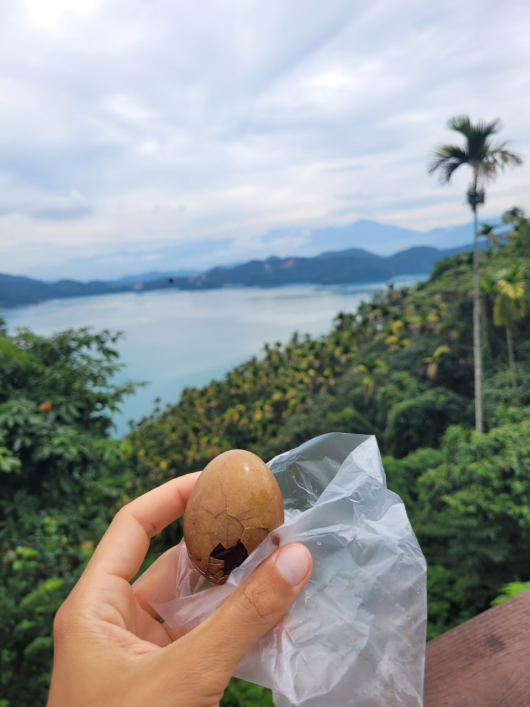 Good to know: Am Sun Moon Lake gilt: Tee-Eier, Tee-Tofu, Tee-Everything. Dieser kleine Imbiss hier verkauft meiner Meinung nach die köstlichsten Tee-Eier am Ort. Es ist der perfekte Protein-Snack nach dem Treppensteigen. Eine freundliche junge Frau schmeißt den Laden, während ein alter Mann neben ihr friedlich in seinem Stuhl döst.