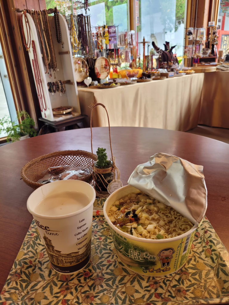 Das Starbucks um die Ecke wird mein täglicher Anker. Normalerweise meide ich die Kette, doch hier in Taiwan sind die Preise für mich moderat – und der Seeblick ist einfach unschlagbar. Morgens und abends ist es ruhig, da weniger Leute hier übernachten. Die meisten machen nur einen Tagesausflug. Die Toilette teilt sich das Starbucks mit Ten Ren’s Tea – eine super Adresse, um den berühmten Sun-Moon-Lake-Schwarztee zu probieren.