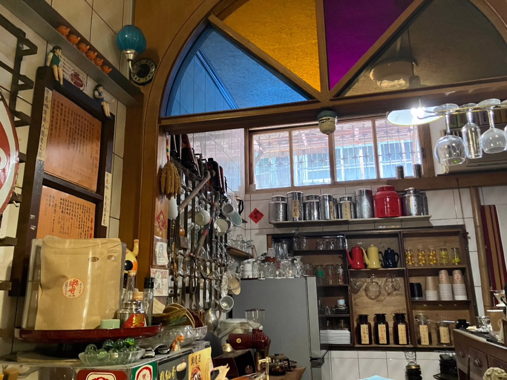 In einem besonders süßen Café mit atemberaubenden Retro-Interieur gönnen wir uns eine Pause. Neben specialty coffee und Tee landet auch ein Taiwan-style Mega-Macaron auf unserem Tisch. Der hippe, junge Inhaber besteht stolz darauf Taiwanisch zu sprechen, als Emily ihn auf Mandarin adressiert.
