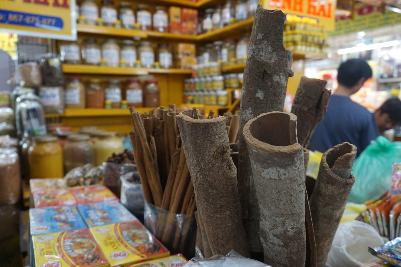 Ich erfahre, dass die Farben gelb und rot für Wohlstand und Geld stehen und dass das der Grund dafür ist, dass viele Ladenschilder in Cholon entsprechend gestaltet sind. Thao erzählt mir, dass ihre Oma und Mutter noch auf dem Markt einkaufen gehen, die jungen Leute in der Stadt aber keine Zeit haben, so früh aufzustehen. Sie wählen den Supermarkt oder lassen die älteren Generationen für sich einkaufen – die in Vietnam so wie in vielen asiatischen Ländern ohnehin alle unter einem Dach leben. Und ich erfahre, dass Thaos Nachbarn große Karaoke-Fans sind, die sie an den Wochenenden ganztägig mit ihren Darbietungen beschallen.