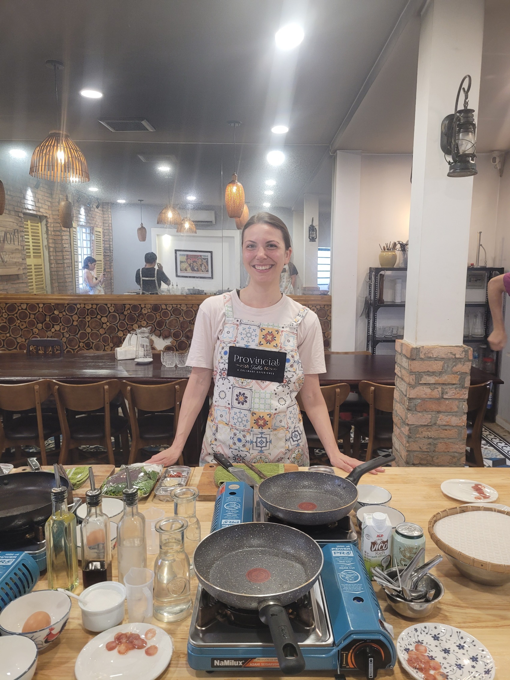 Ansonsten würde ich unsere Gruppe als bunte Mischung gut situierter Menschen aus Australien, Frankreich, Spanien, Österreich und den Philippinen beschreiben. Viele hatten eine Ausbildung als Koch oder haben schon einmal in der Gastro gearbeitet. Das hat mich erst etwas eingeschüchtert. Es stellte sich aber heraus, dass die Gerichte für alle neu waren und Vorwissen bedeutete nicht zwangsläufig, dass alles rund lief. Einen besonders guten Draht habe ich zu einem Pärchen aus den Philippinen entwickelt, mit dem ich nun auf Instagram vernetzt bin und dem ich beim Abschied das Versprechen eines Besuchs in ihrer Heimat geben durfte.