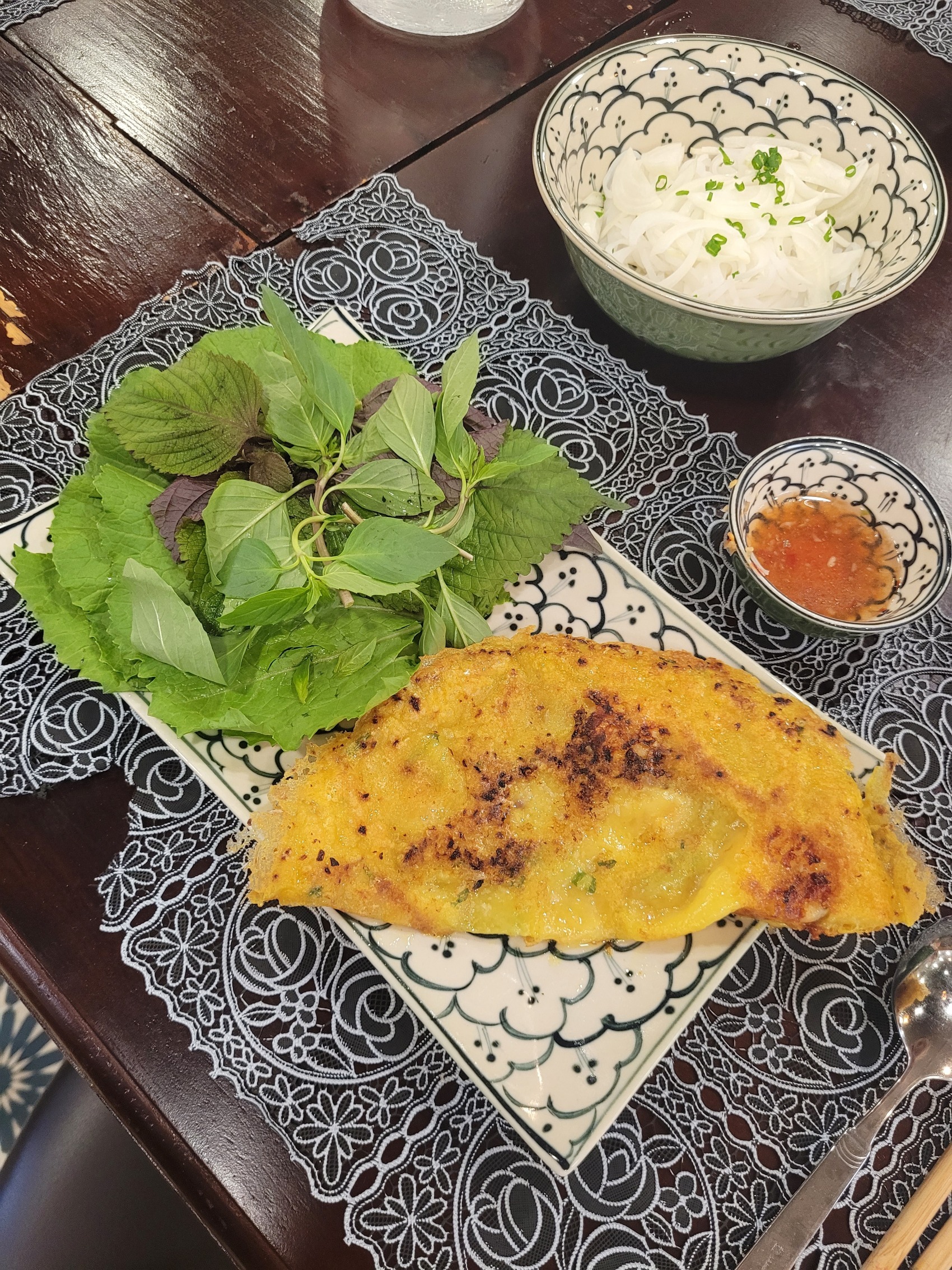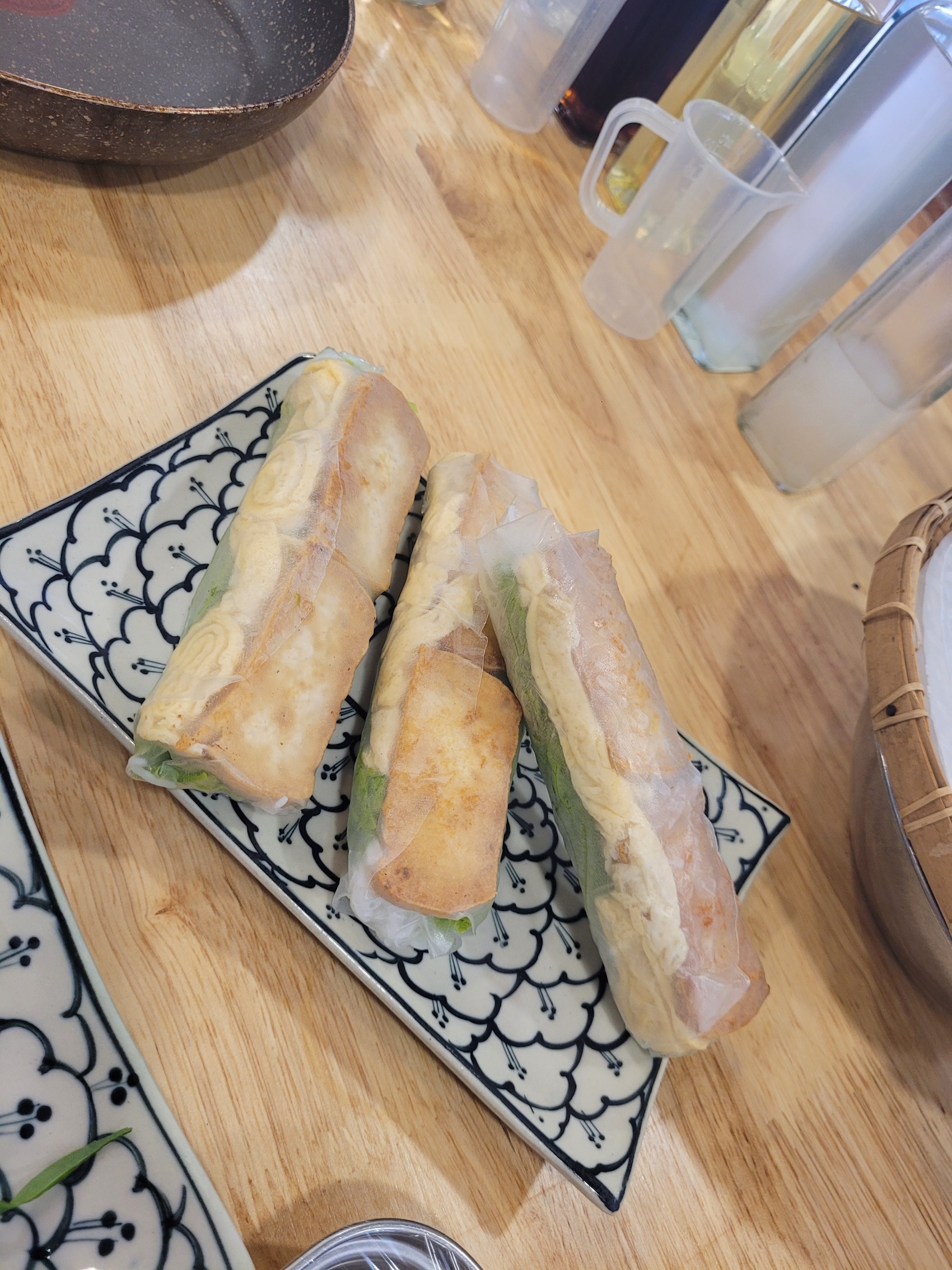 Mit einem Transfer geht es zu den Räumlichkeiten von Provincial Table, die sich nicht weit von meinem Homestay befinden. Dort bereiten wir mit freundlicher Unterstützung unserer anleitenden vietnamesischen Köchin frische Sommerrollen, banh xeo (vietnamesische Pfannkuchen) und pho zu. Auf meine Ernährungsbedürfnisse wird große Rücksicht genommen. Ich bekomme bei allen Speisen, die traditionell Fleisch enthalten, eine vegetarische Option, die dem Original in Nichts nachsteht. Meine Sommerrollen enthalten Tofu, bei den Pfannkuchen verzichte ich auf die Schweinefleisch- und Wurst-Füllung. Meine pho wird mit Gemüsebrühe gekocht und enthält als Einlage zusätzlich zu den Reisbandnudeln leckere Maiskolben und großzügige Karottenstücke.